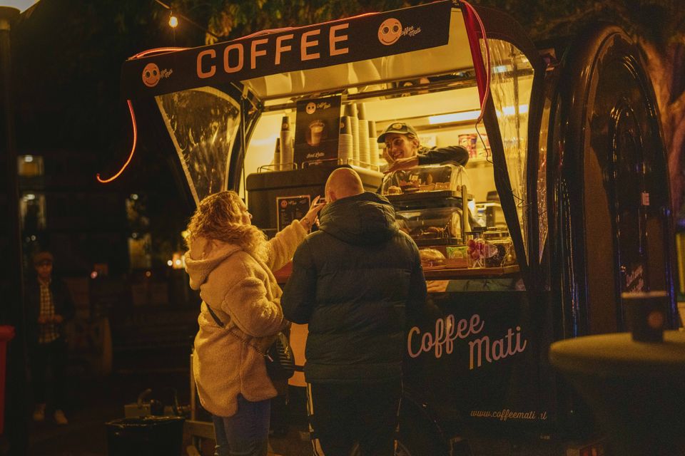 Kom langs bij onze koffietruck voor heerlijk barista koffie, matcha, thee, warme chocolademelk & onze huisgemaakte lekkernijen zoals de geliefde choco-kokos-cakejes en Surinaamse eksi kuku. Wij hebben ook verfrissende (tropische) dranken; Fernandes, Gemberbier, Coconut water, maar ook Fanta, Cola etc. Zin in een wijntje of biertje? Geen probleem! Ons speciaal iconische bier uit Suriname (Parbo Bier) maakt de avond compleet. Zoals ze in Suriname zeggen: Parbobier, dat n’a biri! Coffee Mati verwelkomt je graag! Lobi.