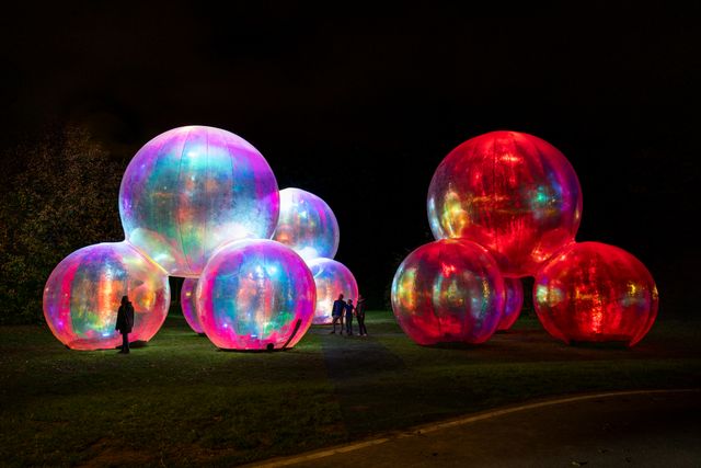 Evanescent is een gloeiend kunstwerk van licht en geluid dat je uitnodigt om erin te stappen en het te ervaren. Het heeft de vorm van bubbels – een herinnering dat, net als bubbels, het leven kwetsbaar en kortstondig is en bedoeld om van te genieten zolang het duurt. Het idee ontstond tijdens de COVID-19-pandemie, een tijd waarin de wereld vertraagde en veel alledaagse dingen waar we op vertrouwden, begonnen te verdwijnen. Met zijn glinsterende, dromerige kwaliteit brengt het kunstwerk de magie van bubbels terug die we allemaal kennen uit onze kindertijd – speels, vrolijk en vol verwondering.