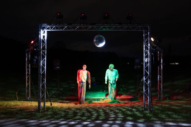 Dit kunstwerk is geïnspireerd op home-made speelgoed; ‘jig dolls’. Dat zijn houten poppetjes met losse ledematen die stepdansen of ‘jig'en op de maat van de muziek. De twee levensgrote figuren verbeelden de kunstenaar en een oude vriend. In een reeks scènes, gedragen door muziek en licht, wisselen sfeer en stemming en zien we hoe deze twee mannen, soms met een beetje gêne, samen dansen. Soms aarzelend, soms uitbundig, bewegen de figuren - als een intiem zelfportret en tegelijk als herkenbaar verhaal over vriendschap en het vieren van het leven.