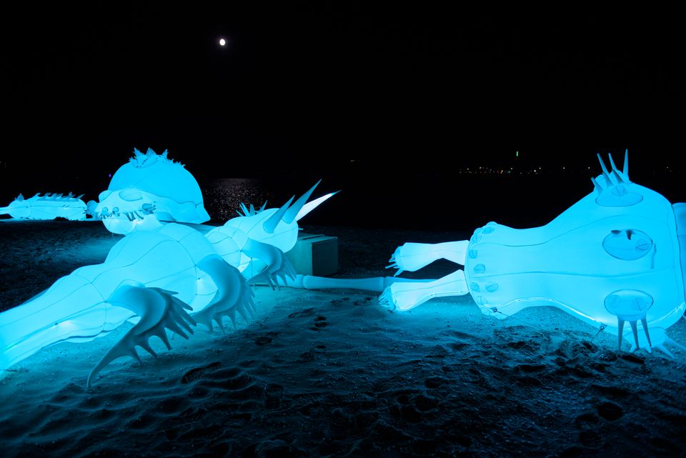 You wouldn't say so, but these colourful, wondrous beasts are enlarged specimens of perhaps the smallest creatures in the animal kingdom – rotifers. Here they take over the city beach at the Esplanade, all colour and energy, while these single-celled creatures are actually minuscule. Found mostly in water and wet soil, as many as two million could fit into a single square metre!