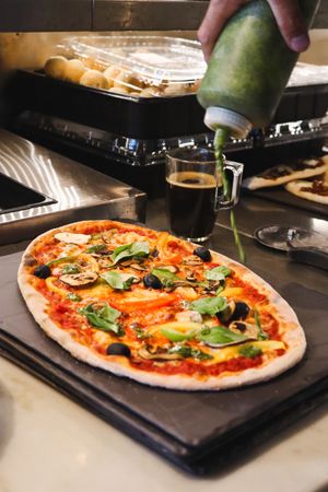 Volgens Woodstone is de pizza Tartufo een aanrader: Een steenoverpizza met een mooie mix van oesterzwammen, portobello, shiitake, bundelzwam en kastanjechampignons met rode uienringen, rucola en grana padano kaas, besprenkeld met huisgemaakte truffeltopping. Daar zeg je toch geen 'nee' tegen?!